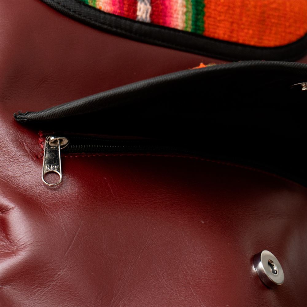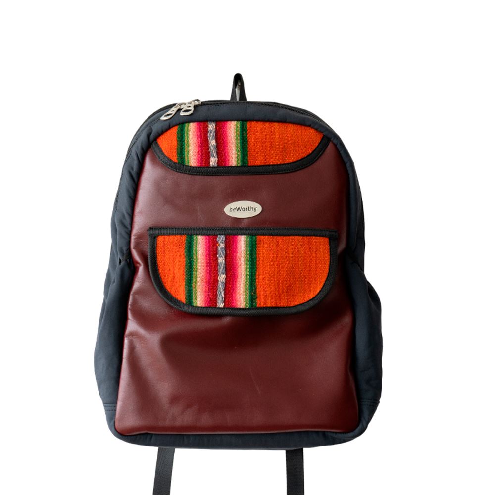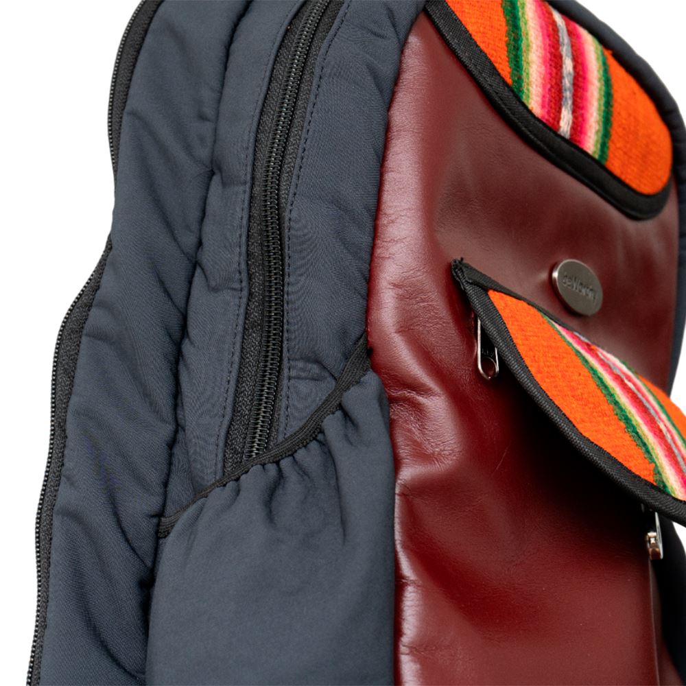Mochila mediana beWorthy, de cuero guinda, tela incaica de lana de oveja y tela acolchada sintética
