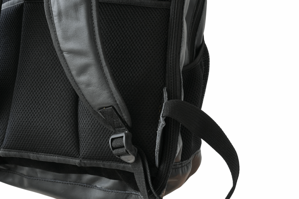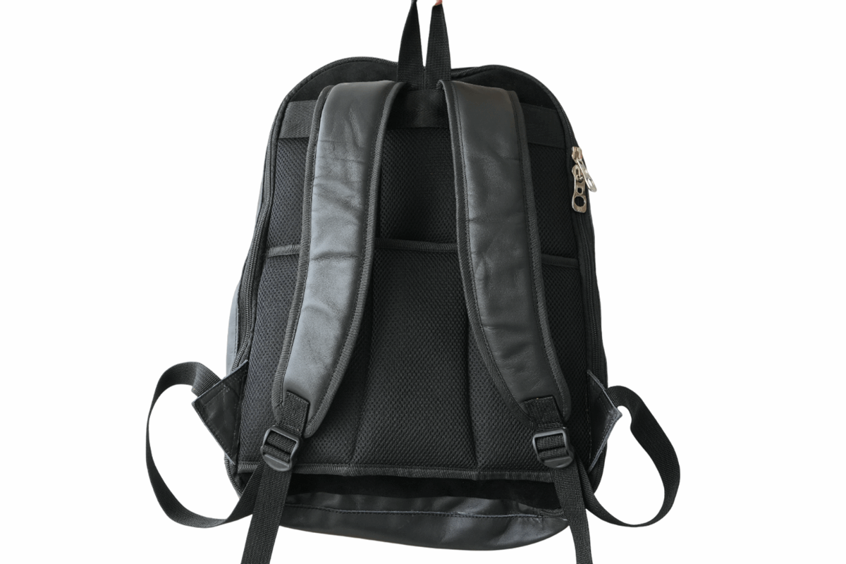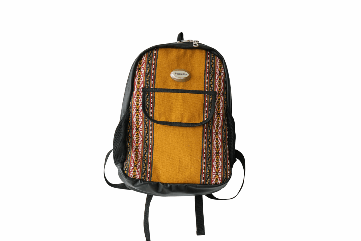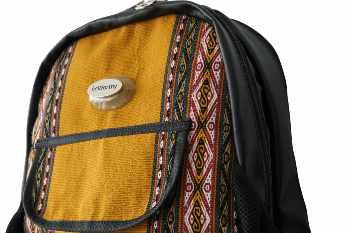 Mochila mediana beWorthy, de cuero negro, tela incaica de lana de alpaca y detalles en cuero negro