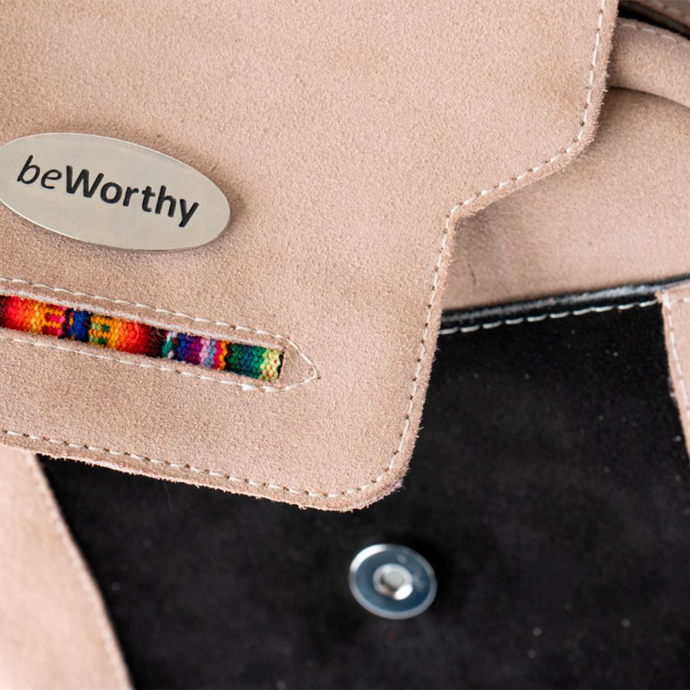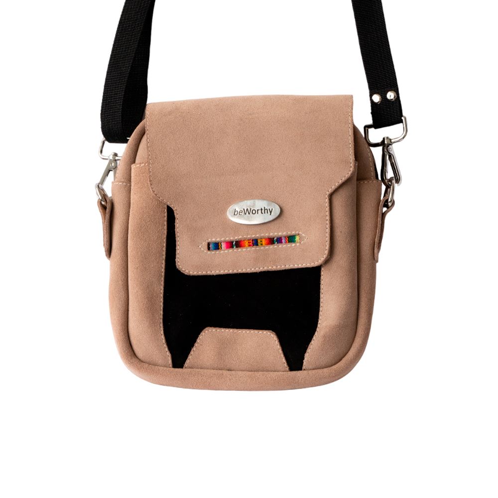 Morral beWorthy de gamuza beige y negra