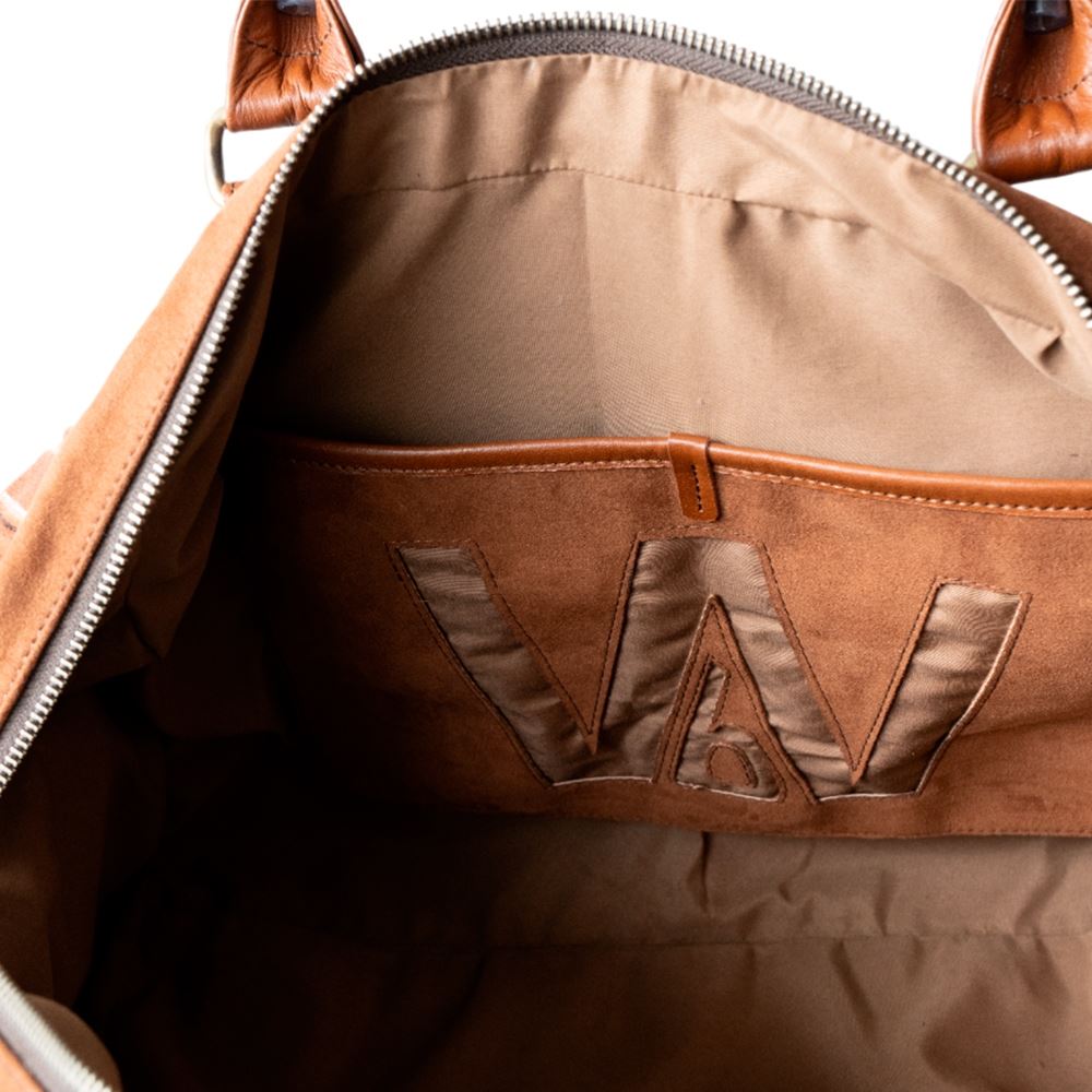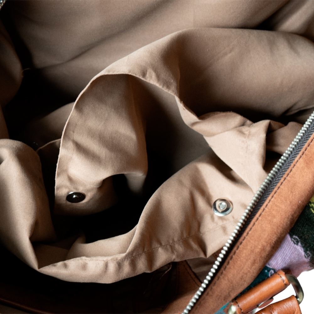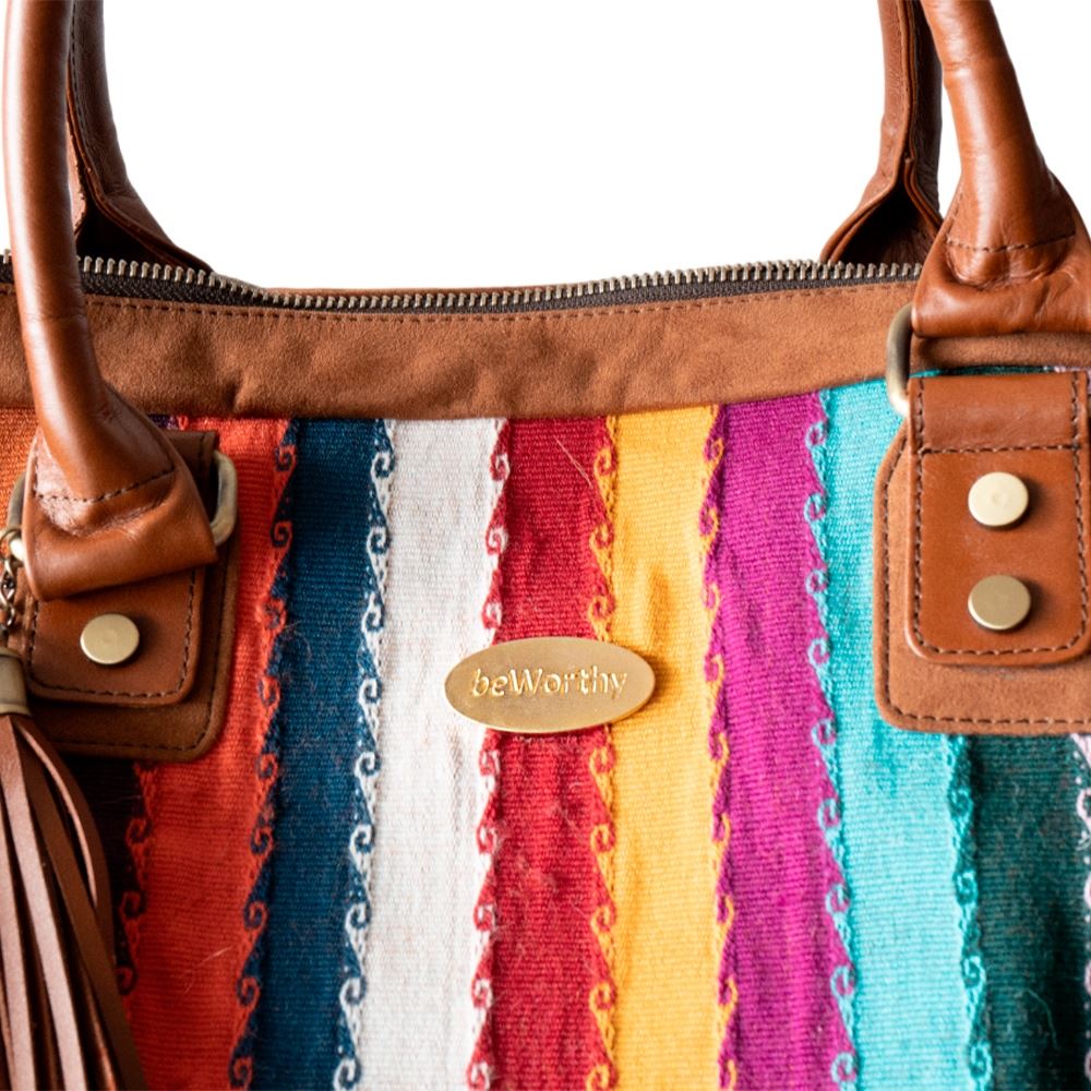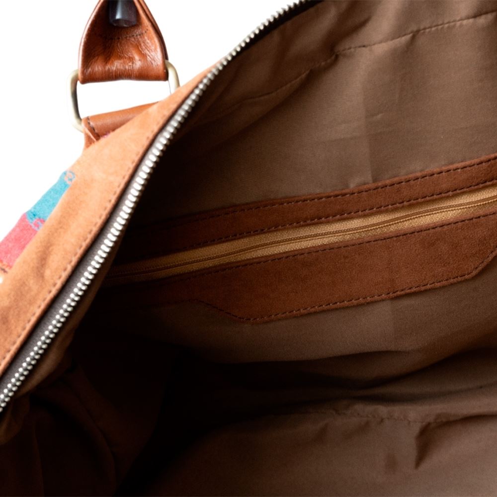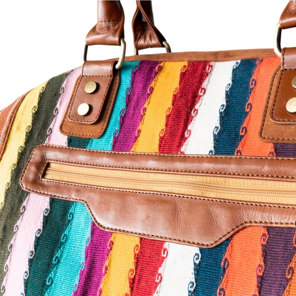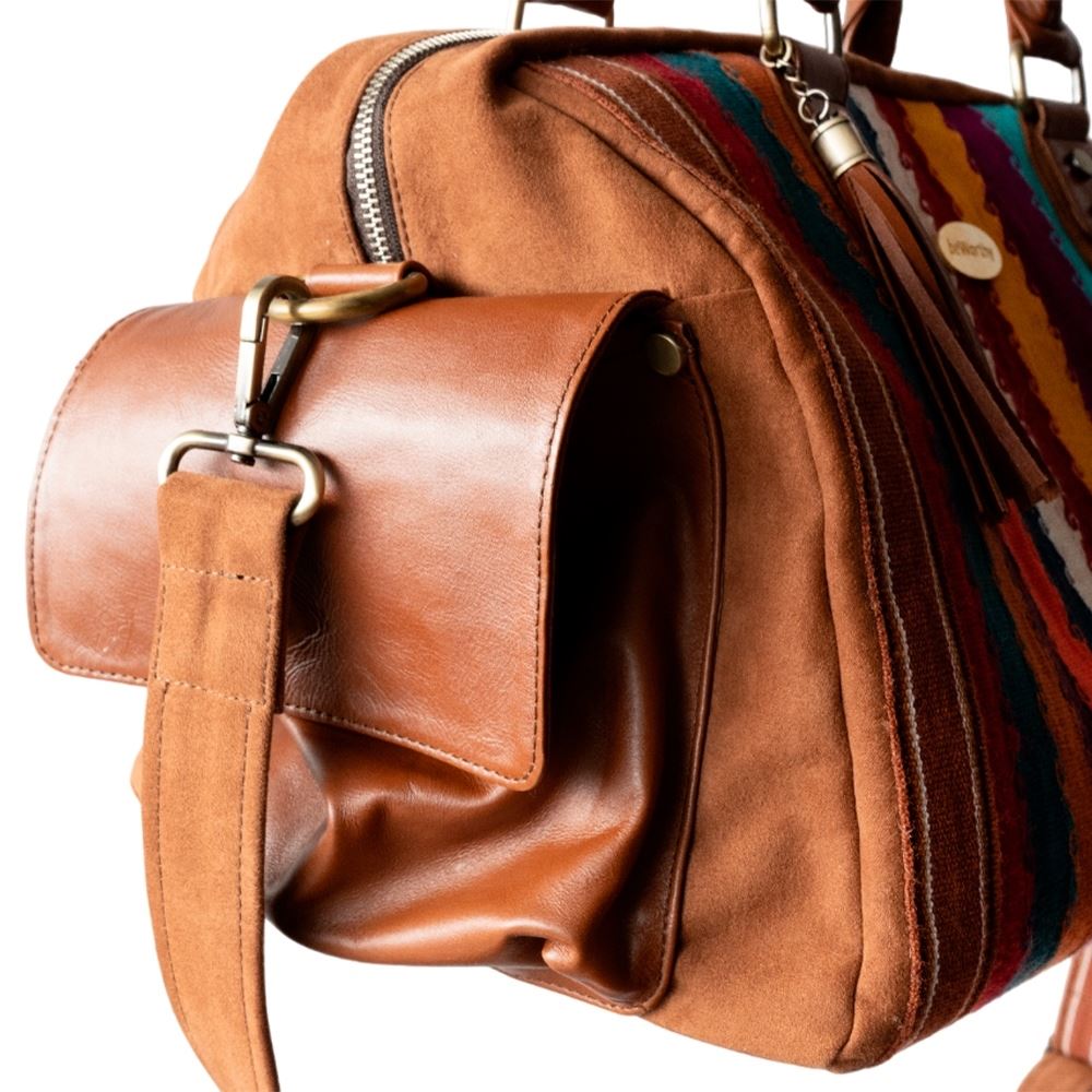 Maletín de viaje beWorthy, mediano, unisex, de telar incaico con suede y cuero camel