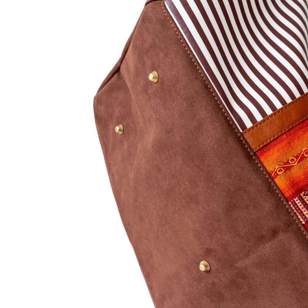 Cuero, Greca incaica de lana de alpaca, Lona plastificada, Suede agamuzado, Telar incaico de lana de alpaca
