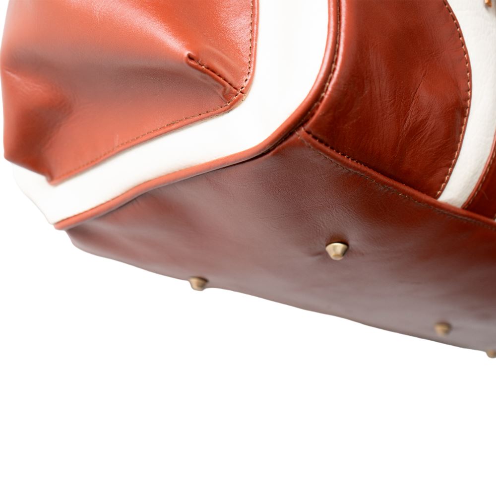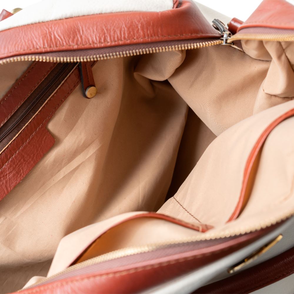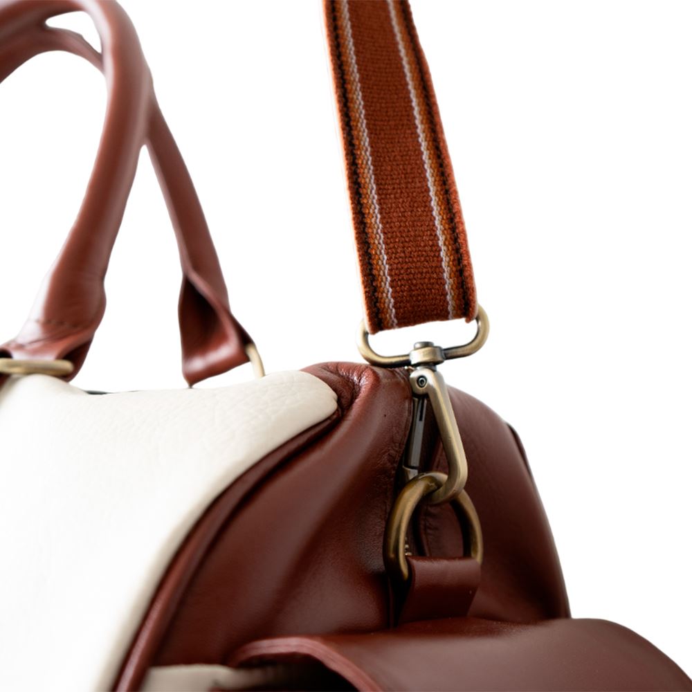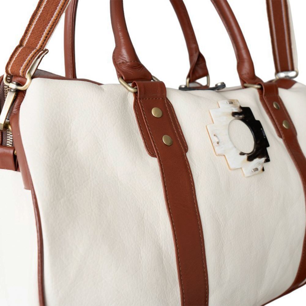 Maletín de viaje beWorthy, mediano, unisex, de cuero color hueso con cuero color camel