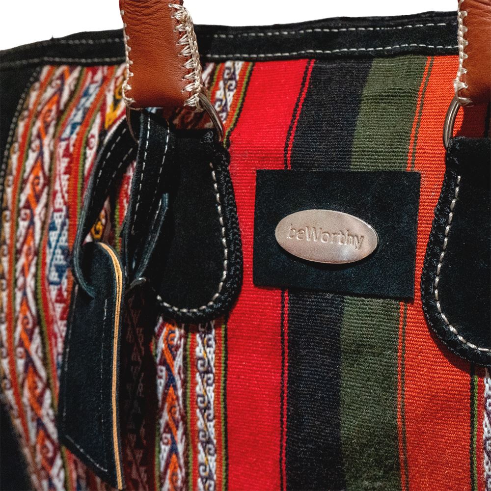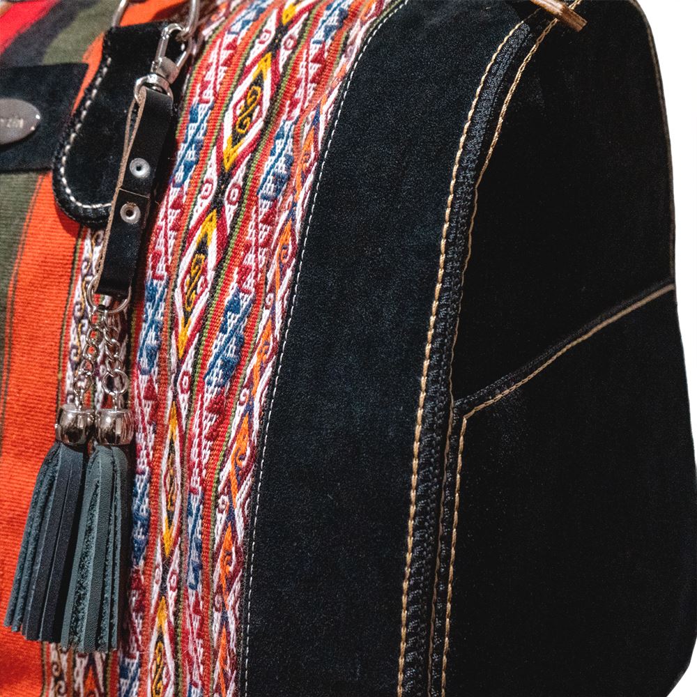 Maletín de viaje beWorthy, mediano, unisex, de gamuza negra con telar incaico