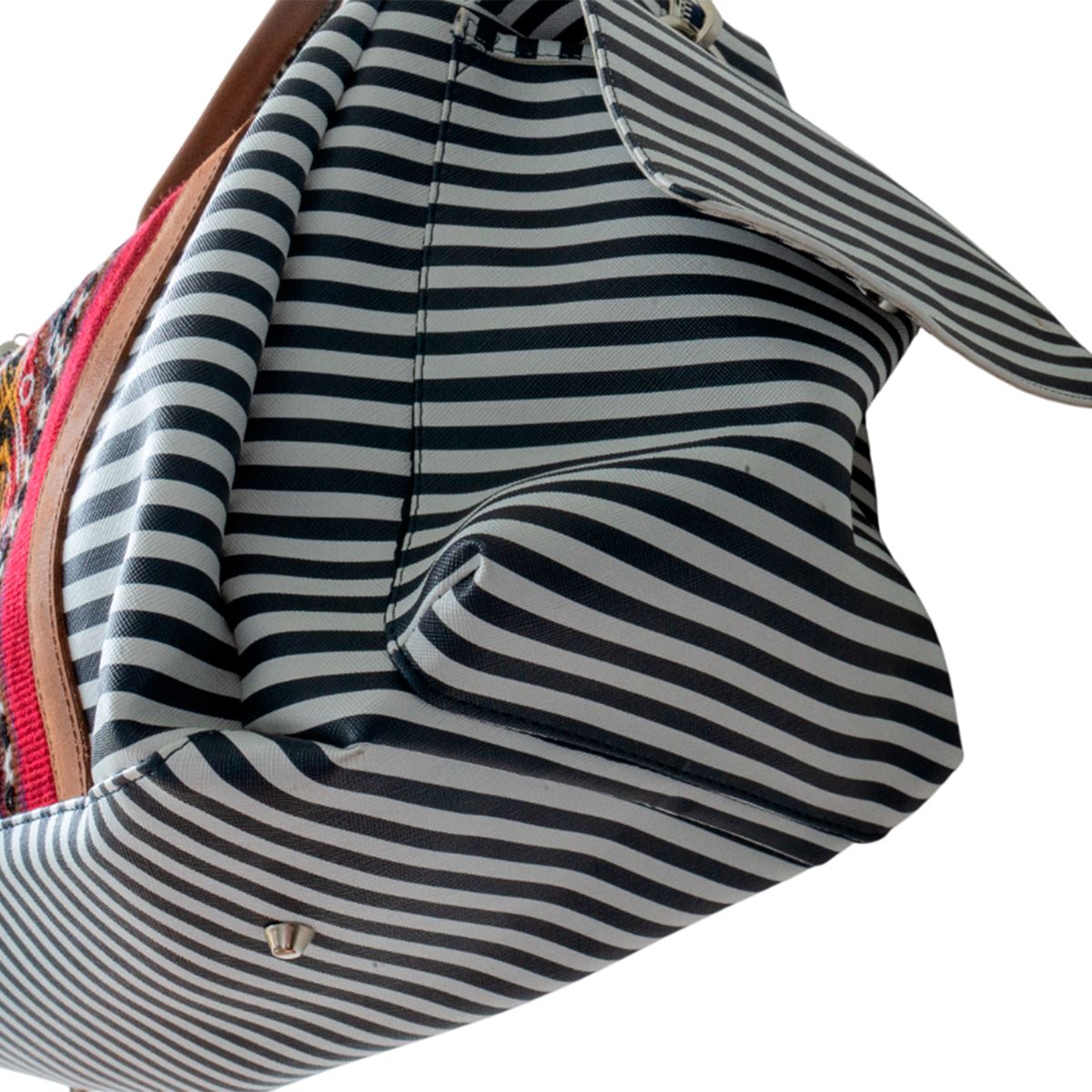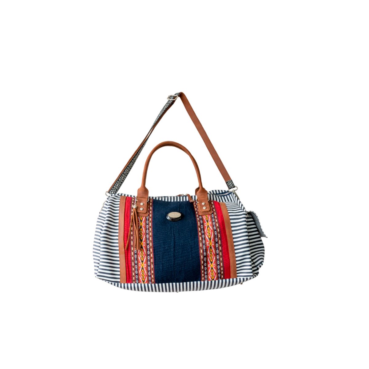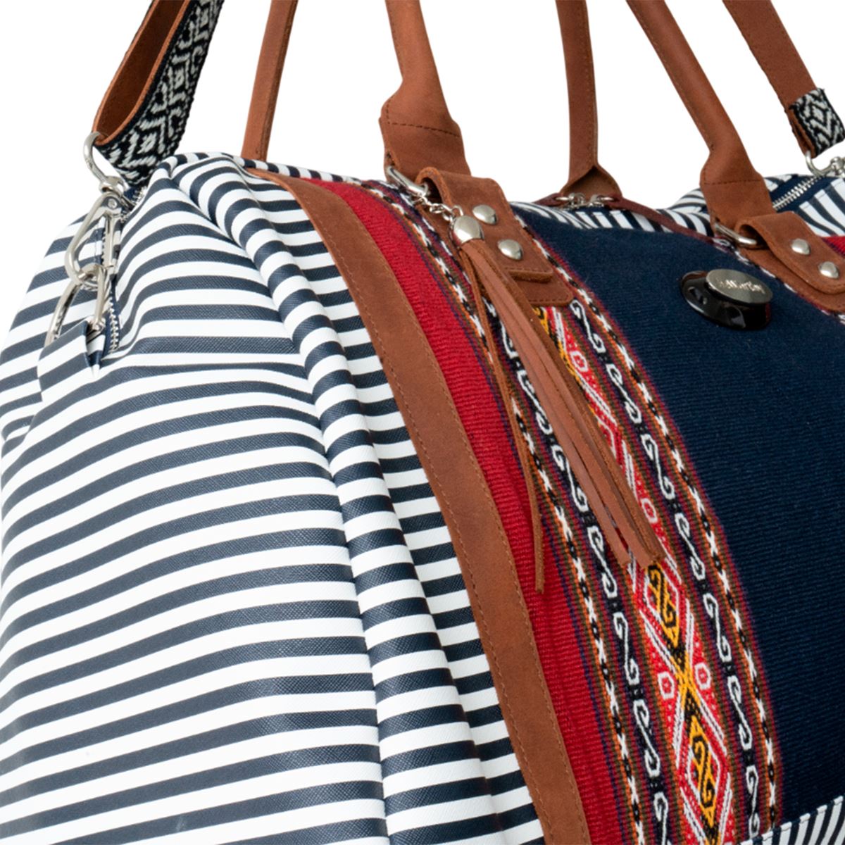 Maletín de viaje beWorthy, gran capacidad, unisex, de telar incaico con lona plastificada rayada azul con blanco y cuero camel