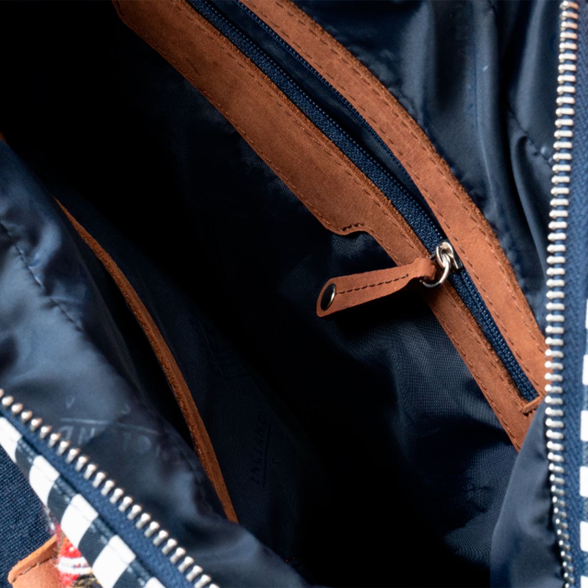 Cuero, Greca incaica de lana de alpaca, Lona plastificada, Telar incaico de lana de alpaca