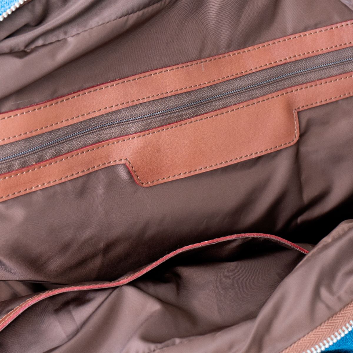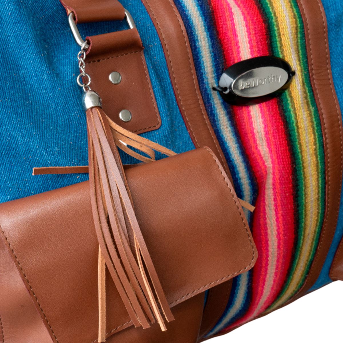 Maletín de viaje beWorthy, mediano, unisex, de tela incaica con tela denim y cuero camel