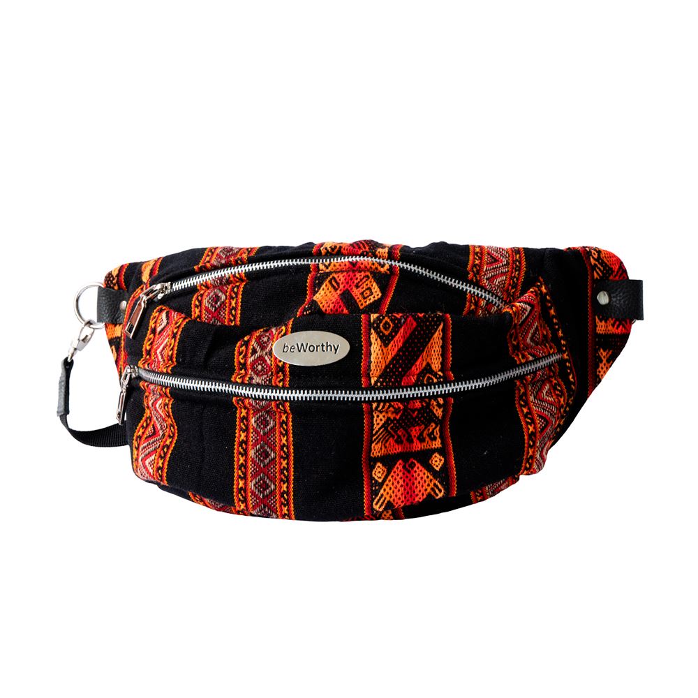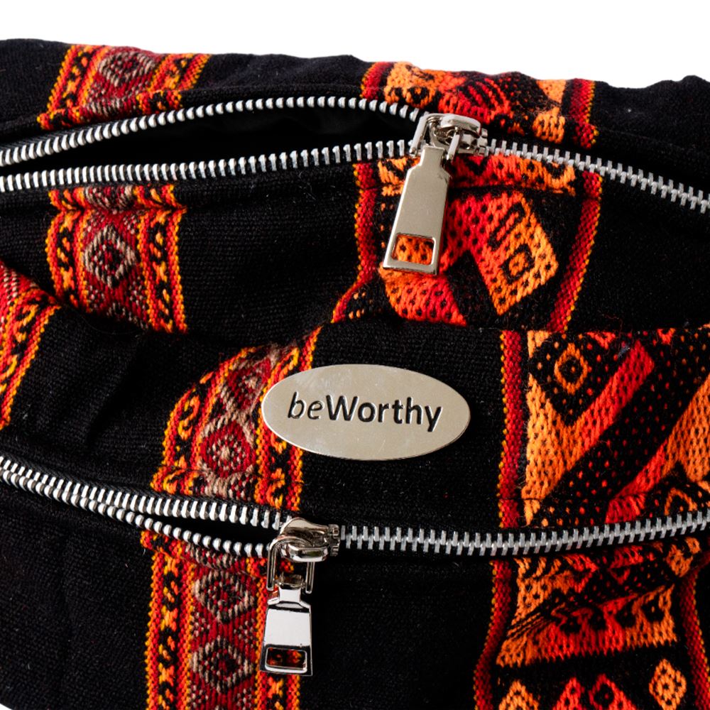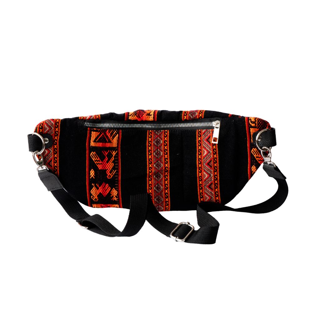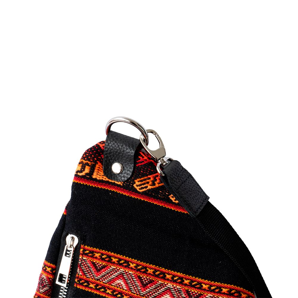 Canguro mediano beWorthy de tela incaica acrílica negra con tonos rojos y naranjas