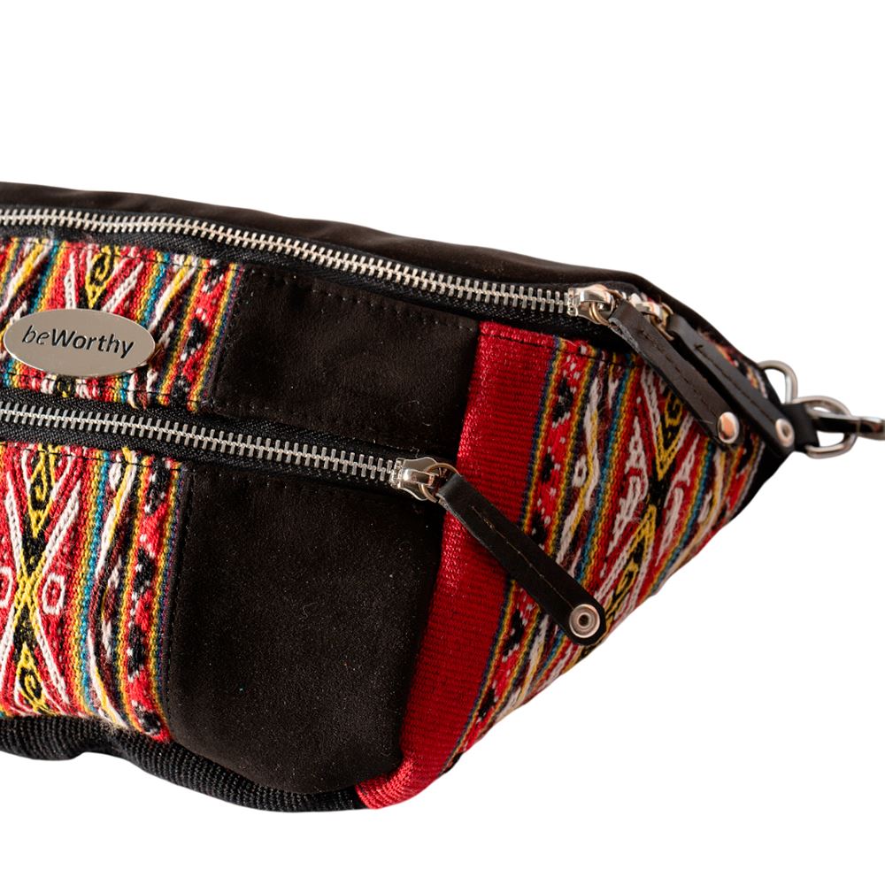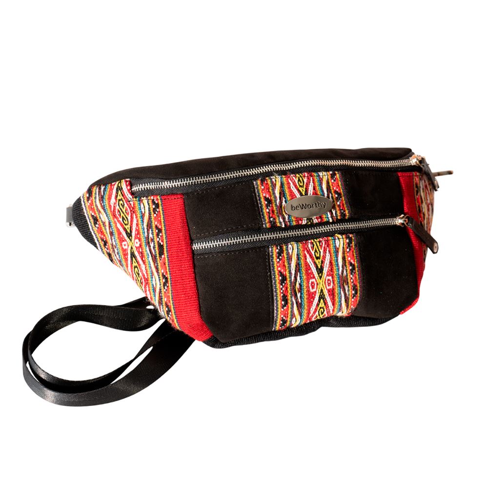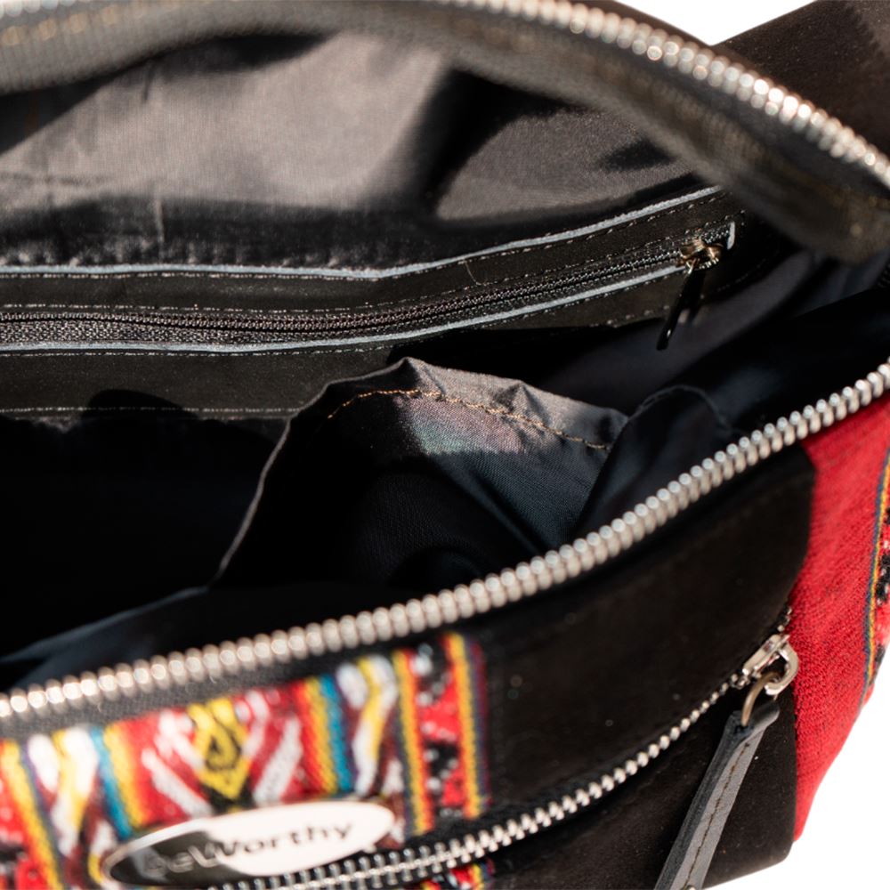 Canguro mediano beWorthy de tela incaica de lana de alpaca negra con varios colores y gamuza negra